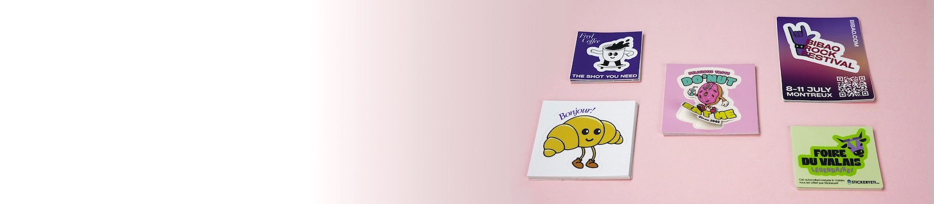 Kiss-Cut-Aufkleber (oder halbgeschnittene Aufkleber) sind eine praktische und originelle Alternative. Sie werden aus unserem hochwertigen weißen Vinyl hergestellt und haften auf allen glatten Oberflächen.